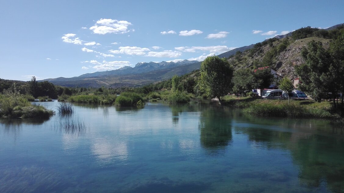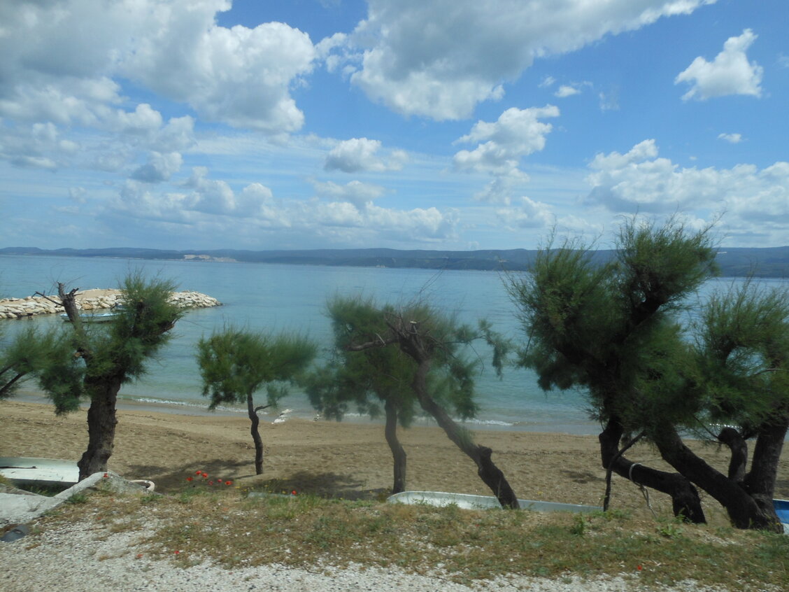 Uitzicht van uit de camper op CC Ninska Laguna. Een slapeloze nacht met ruk- en valwinden gehad.