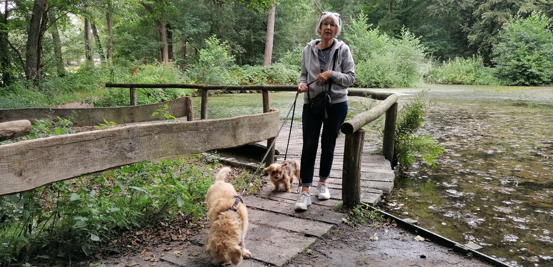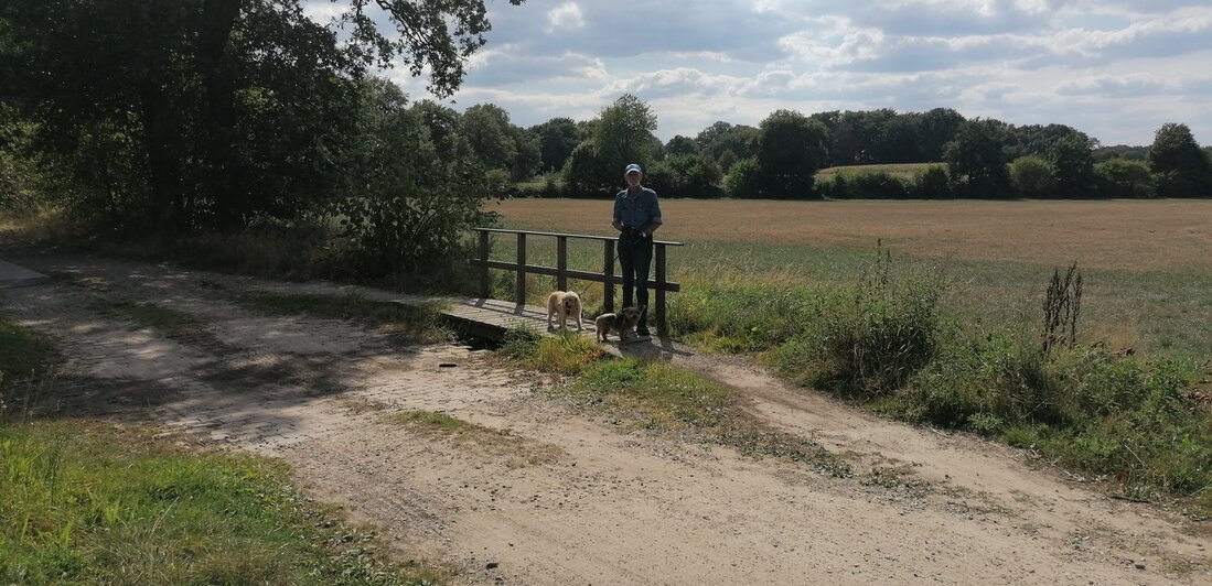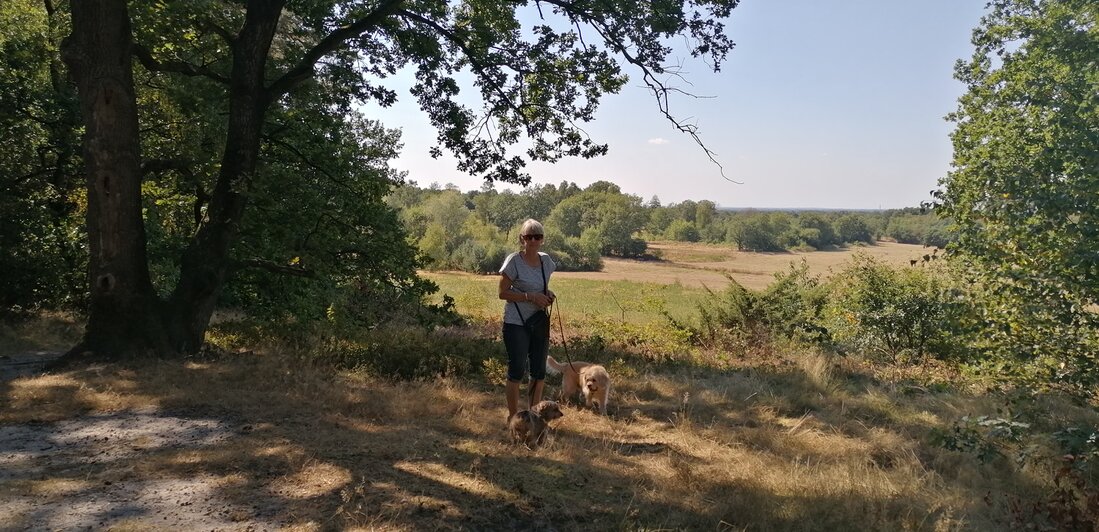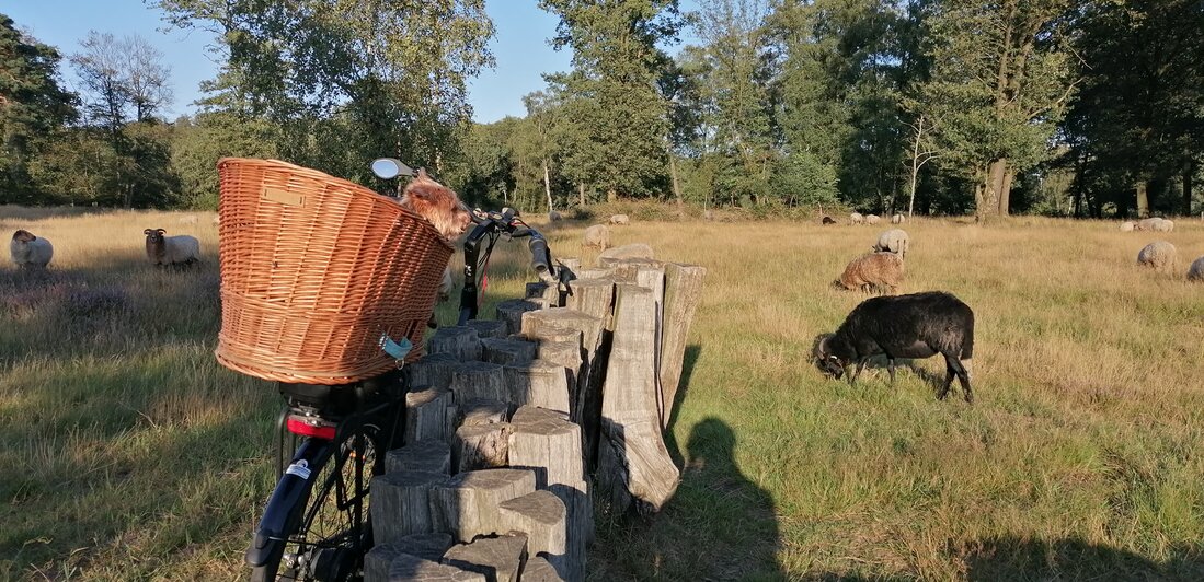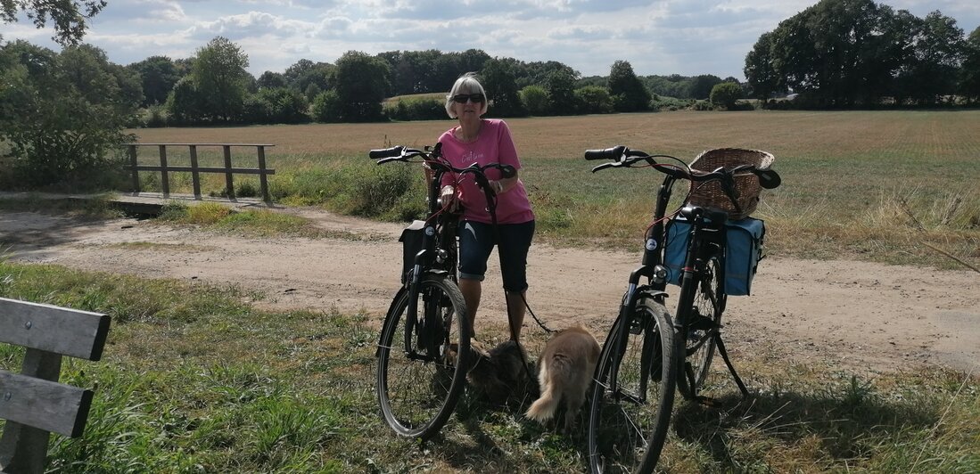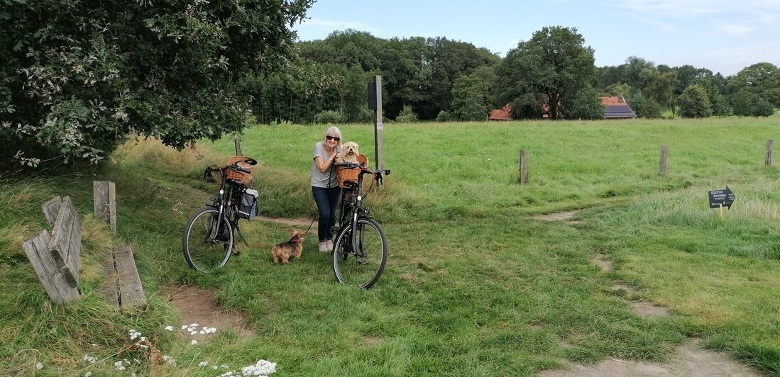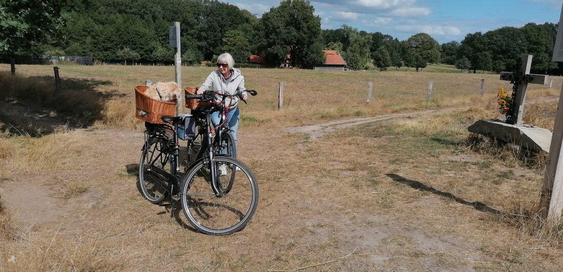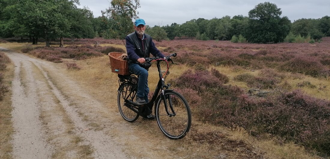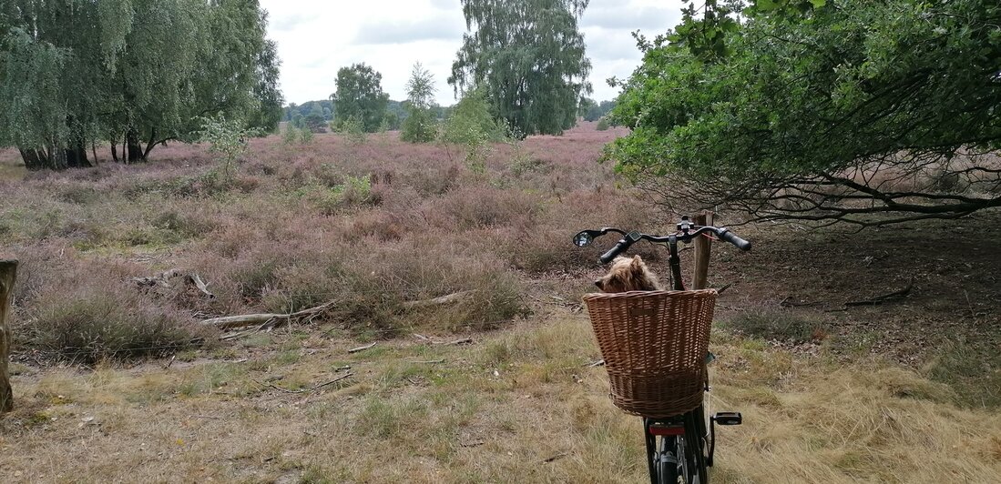 s'Middags rond de Hügelgräberheide gewandeld. André op de fiets met Mara.