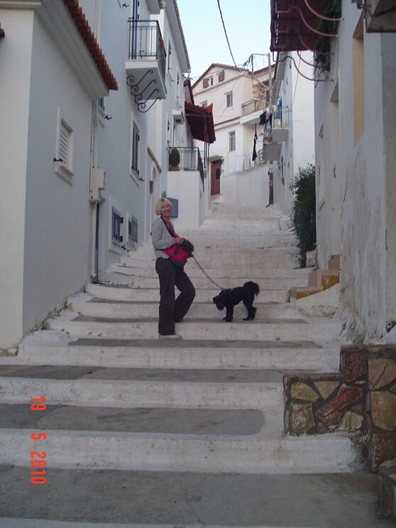 Na het bezoek aan de dierenarts voor het verwijderen van de hechtingen naar Valimitka Pelopenissos.
