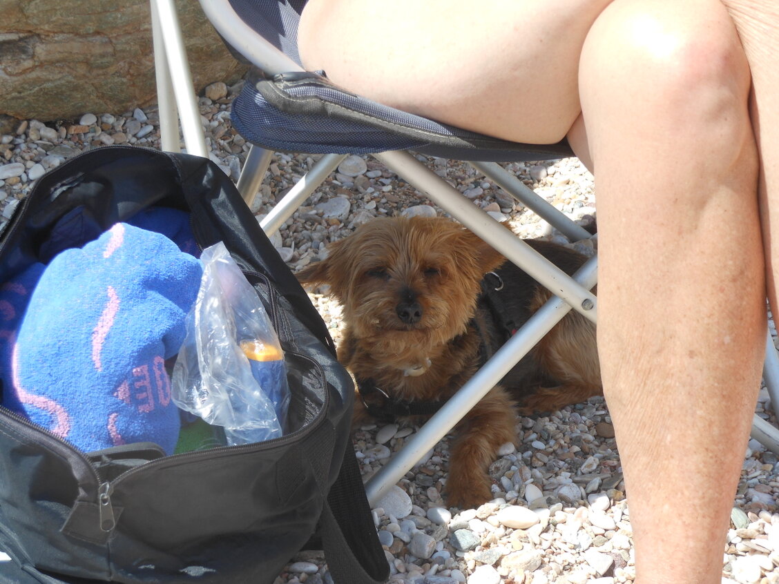 CC Venezuela in alle rust maar te veel zwerfhonden langs het strand waar Mara niet tegen kan.