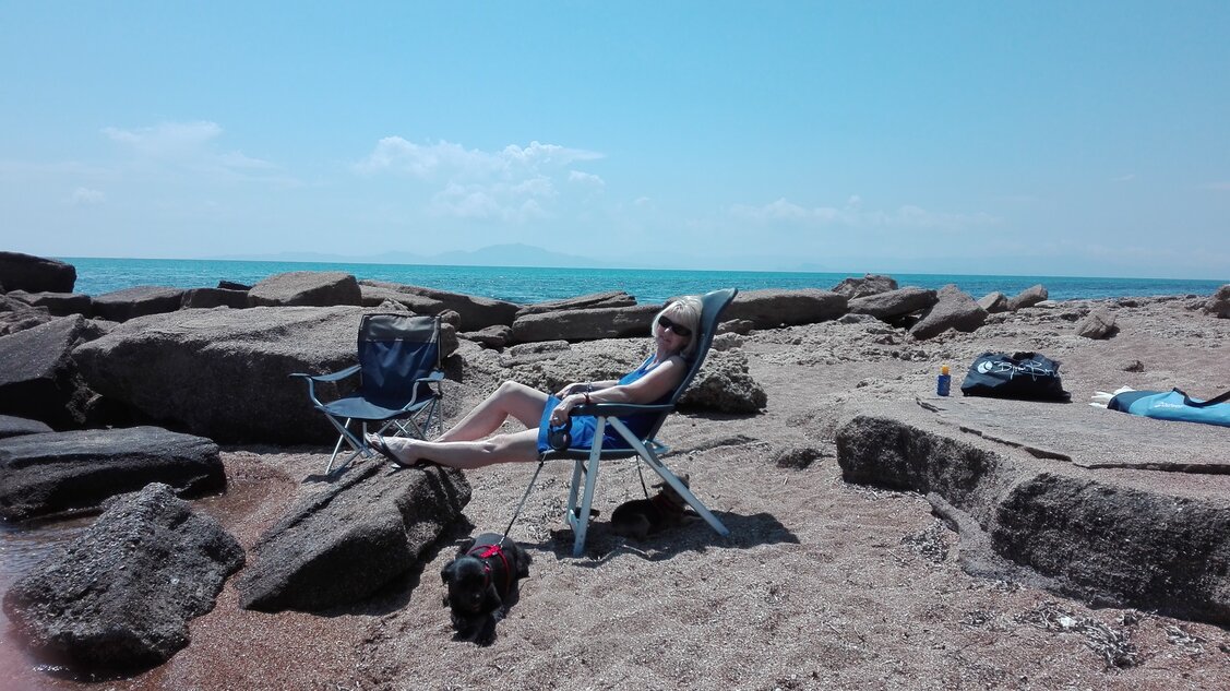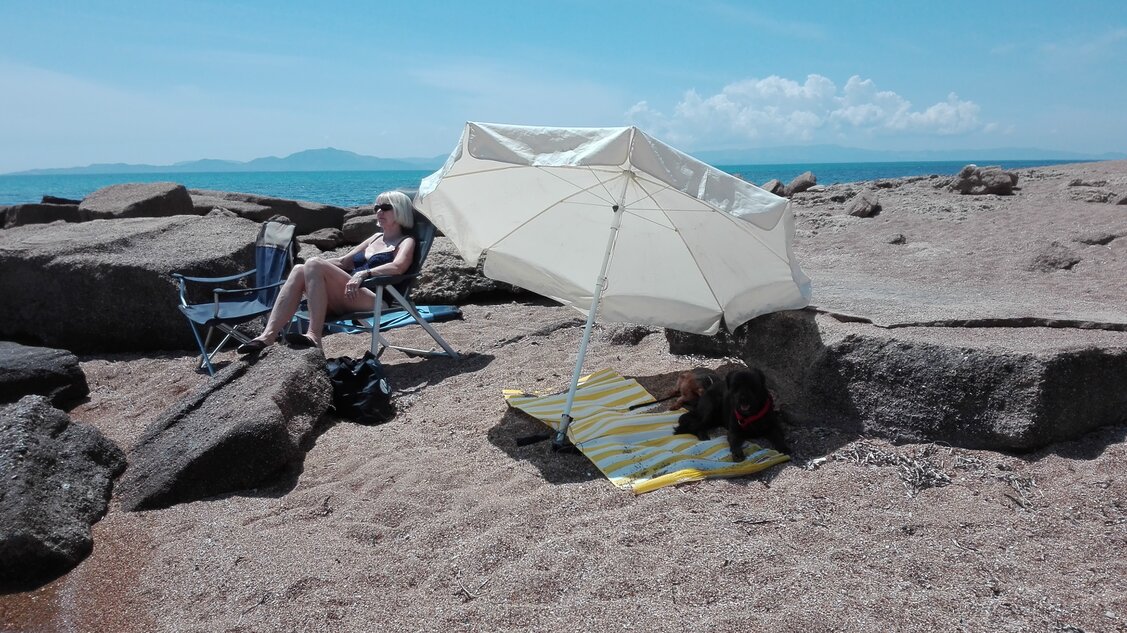 Vrijdagmiddag was het eindelijk weer strandweer. Gewandeld naar het eind van de baai.