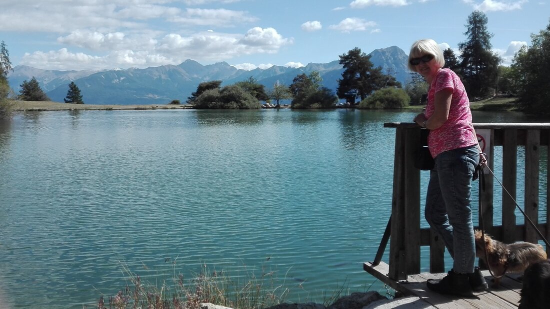 Maandag rond de camping bij het meer gelopen.