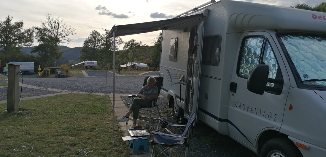 Aangekomen op Camperhafen Liefrange met uitzicht op de Haute Sure.