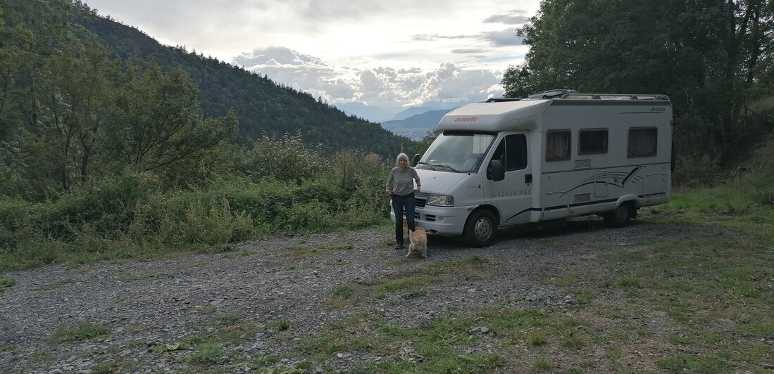 Mooi plateau met uitzicht voor de camper boven de boerderij van Jordan.