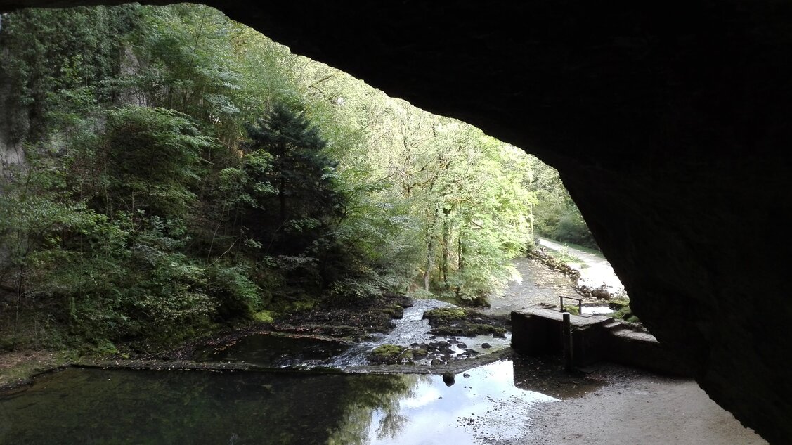 Weer langs de Lison in de schaduw naar de Grotte du Sarazin.