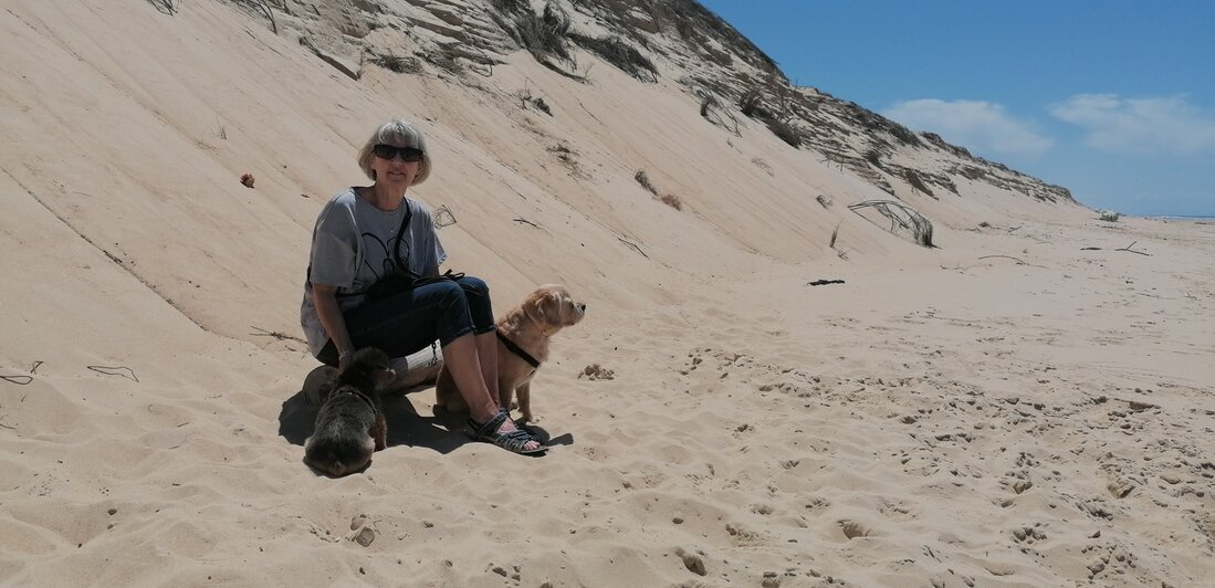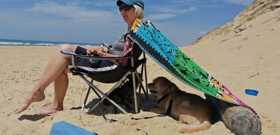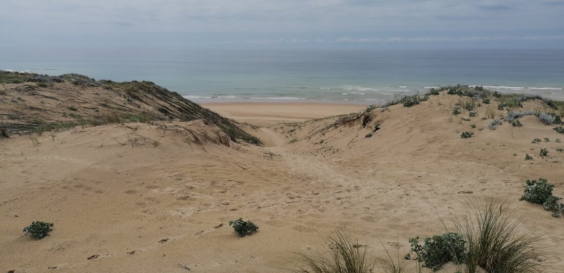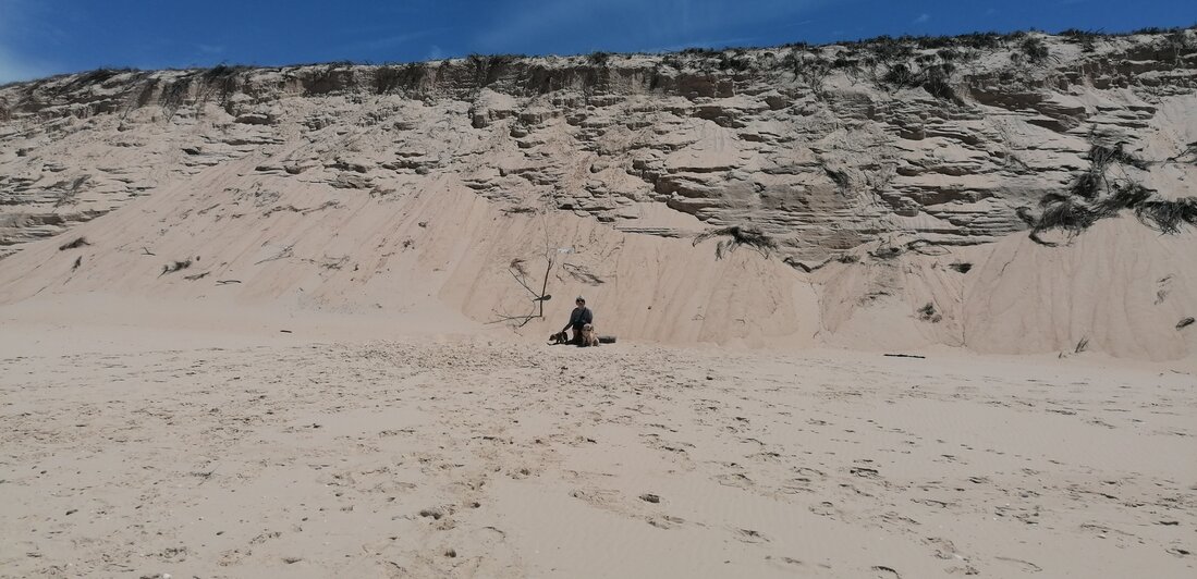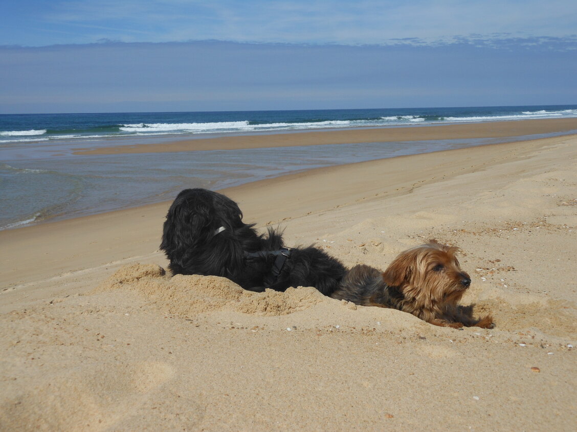 Alle dagen strandweer, dus zeulen door het bos en de duinen naar het strand.