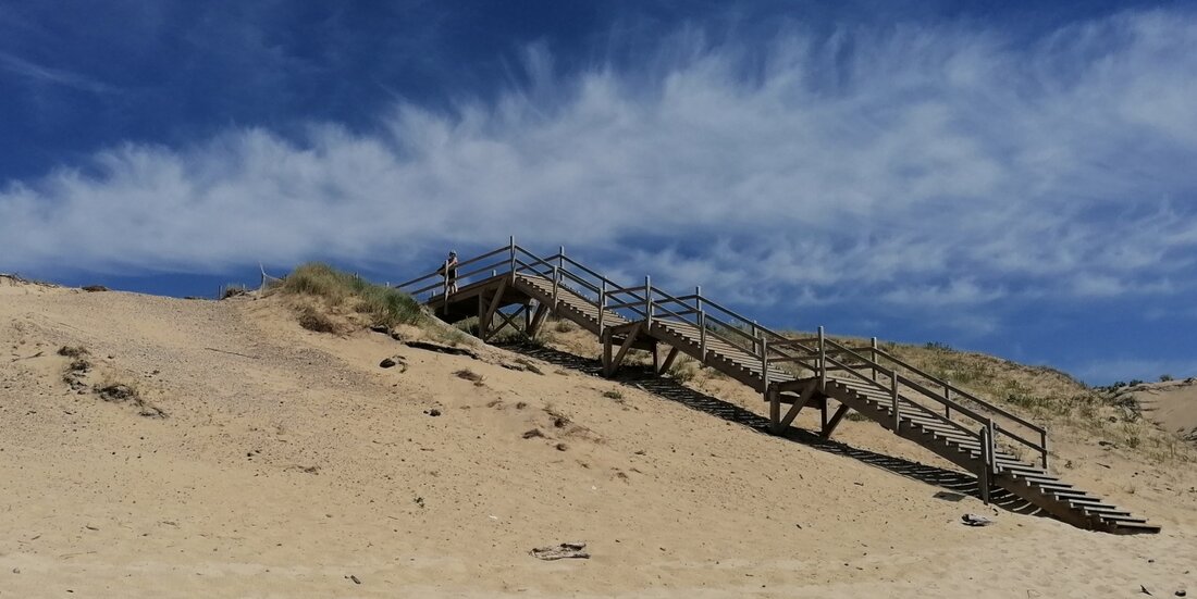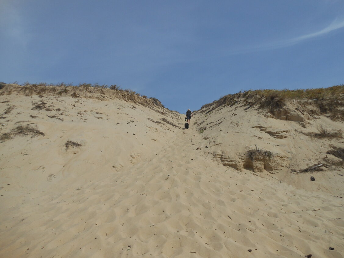 Het is zwaar over de hoge duinen om er te komen.
