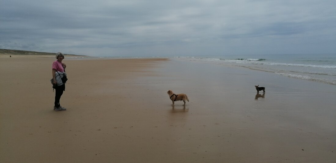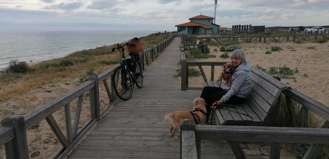 Vrijdag 21 september: s'Morgens een strandwandeling, s'middags in de motregen op de fiets naar Contis-Plage.