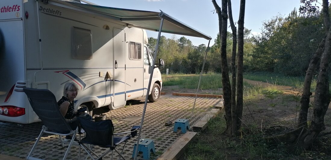 Vanuit Carsac 280 km naar Arjuzanx bij Morcenx. CampingCarPark was moeilijk te vinden.