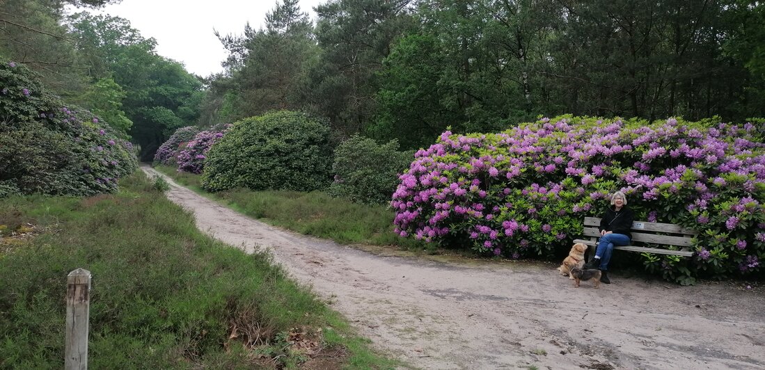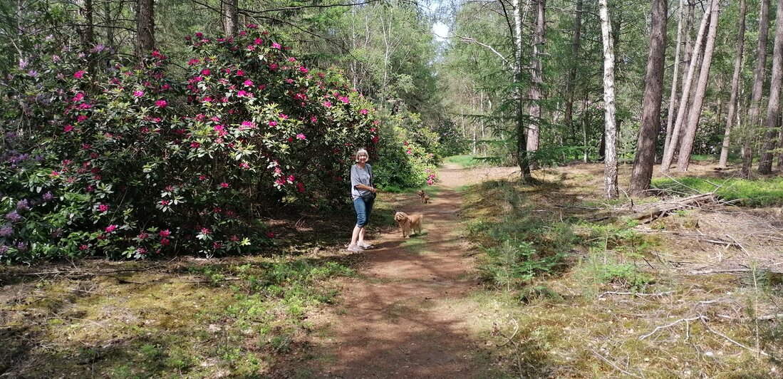 Een bewolkte dag, alleen gewandeld in het rodondendronbos.