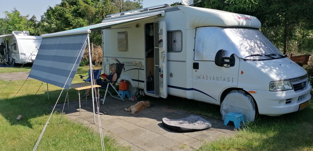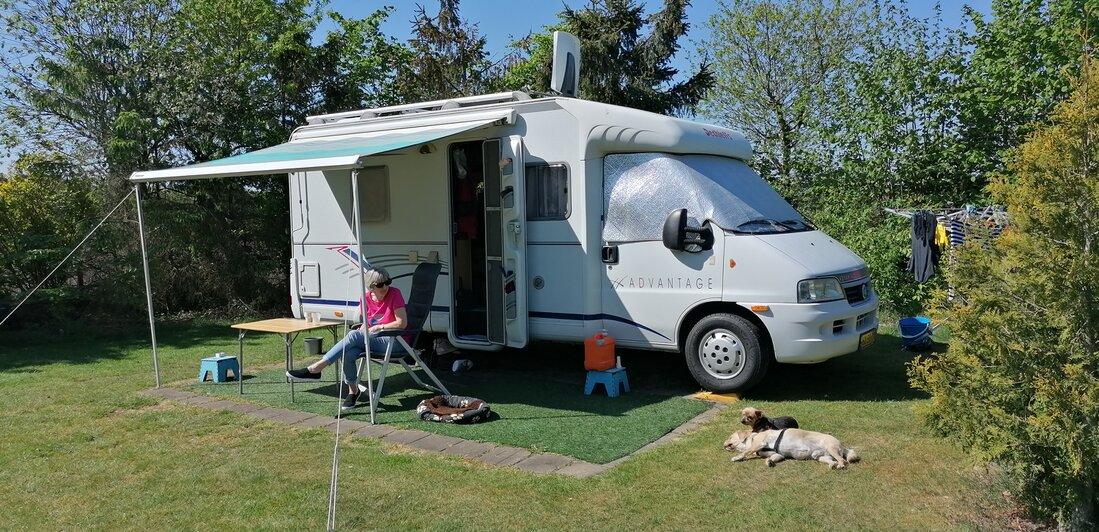 s'Middags voor de camper het onweer afwachten.