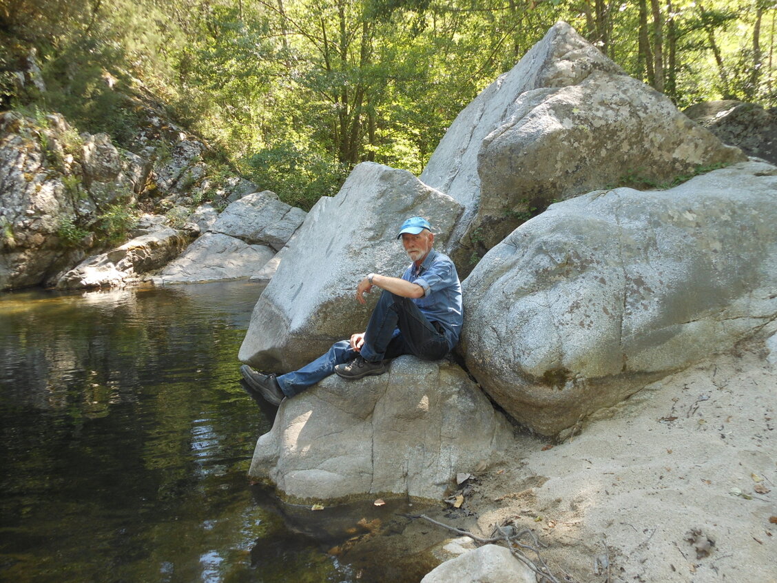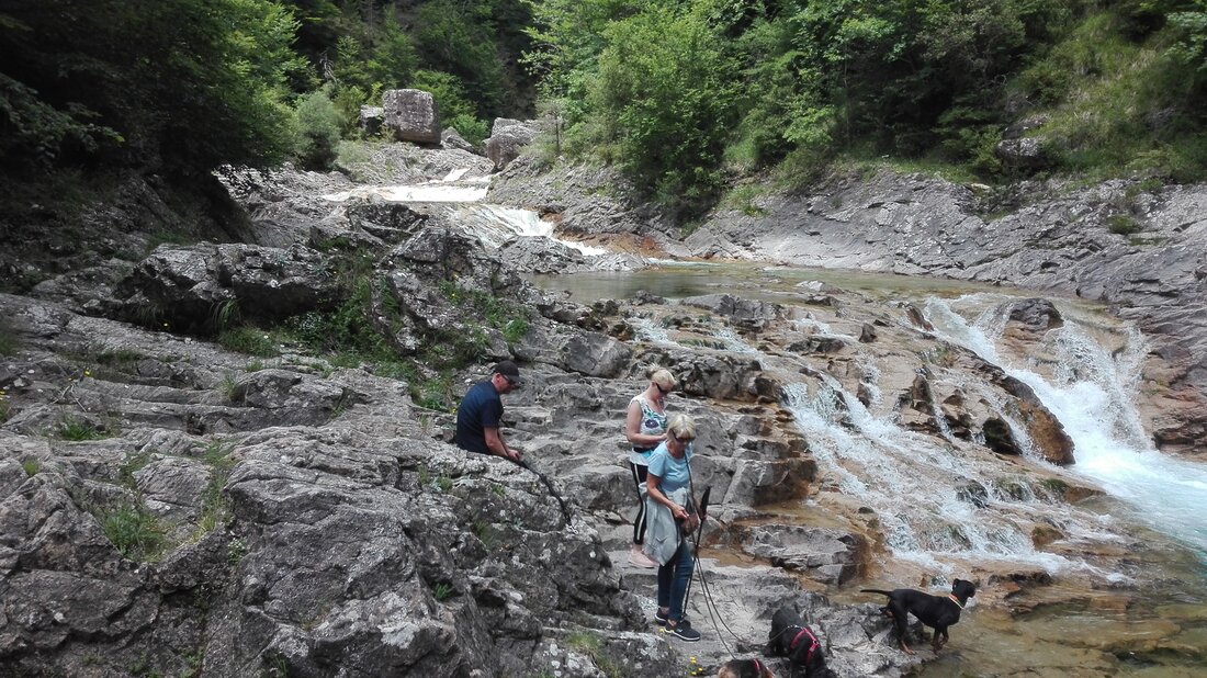 Even pauze langs een beek en bijkomen van de smalle bergwegjes.
