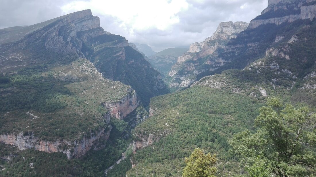De weg leek wel te doen maar donkere wolken pakten zich samen boven Ordesa.