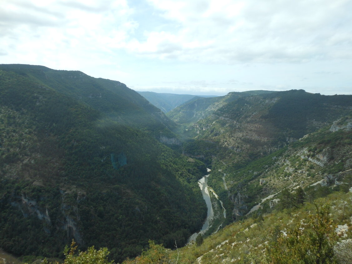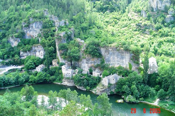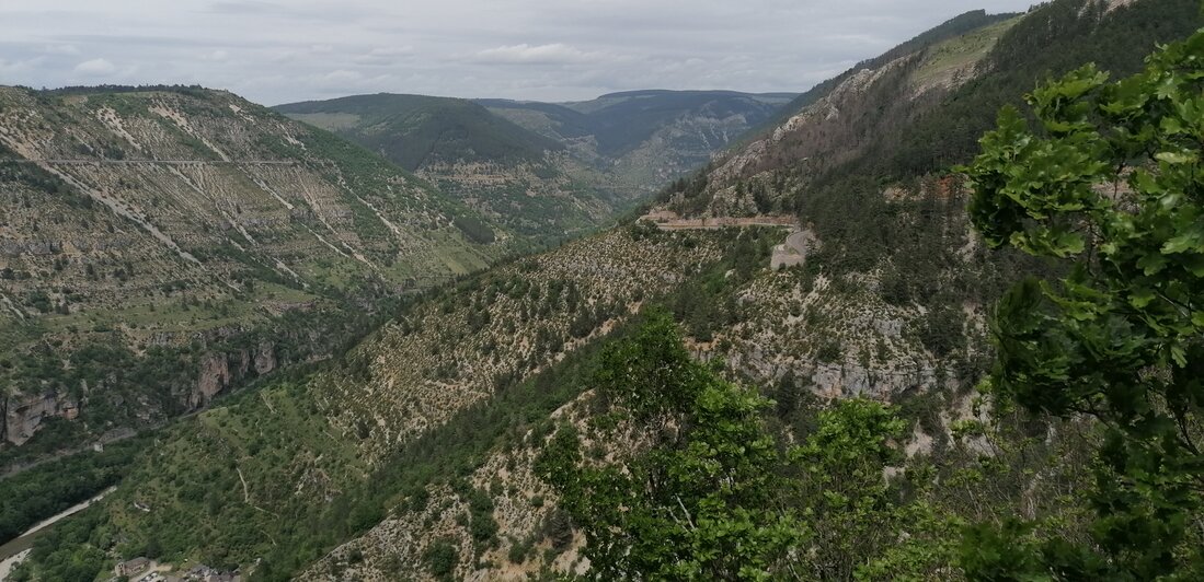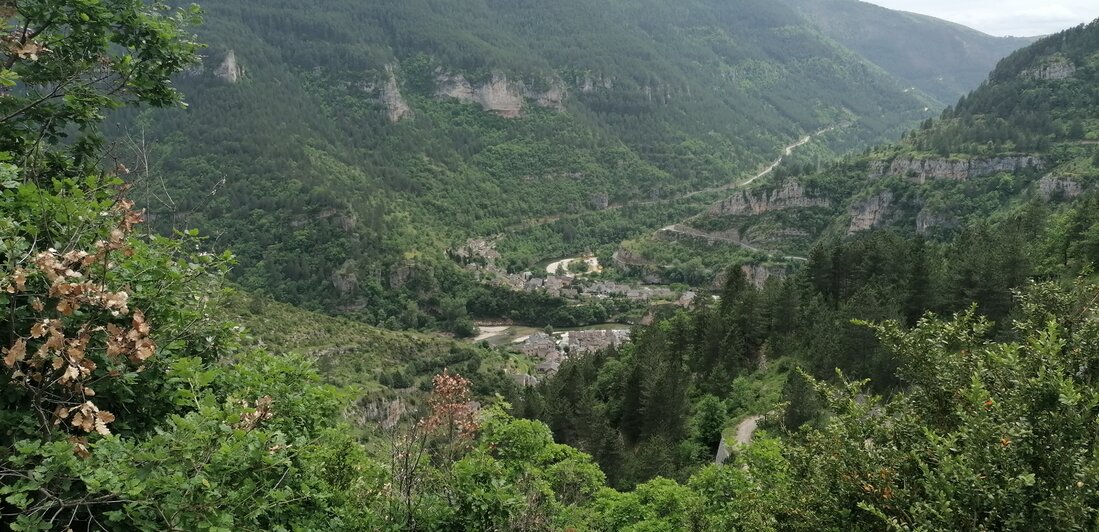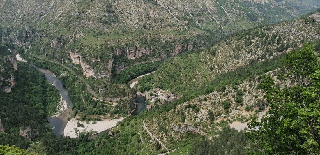 Een geweldige afdaling bij Saint Enimie naar de Tarn en weer omhoog naar de Cause.