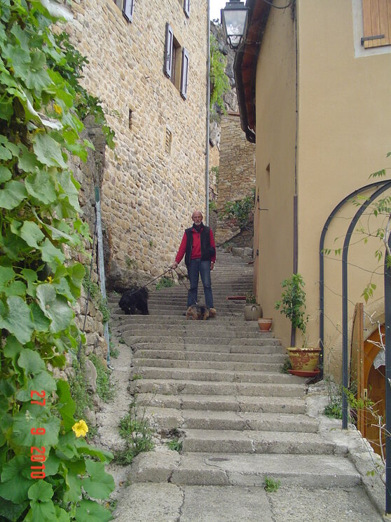 s'Avonds een wandeling naar Saint Michel. Tibi heeft het zwaar met wandelen omhoog.