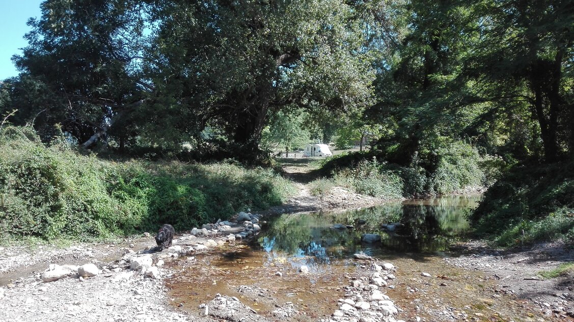 Alle dagen zwemmen achter de camper en wandelen rond Nant.