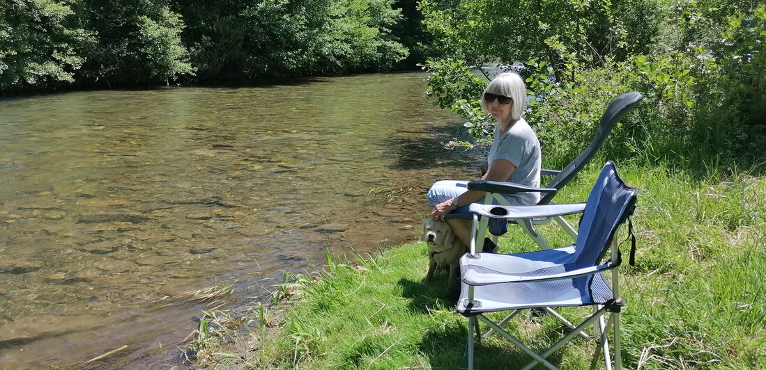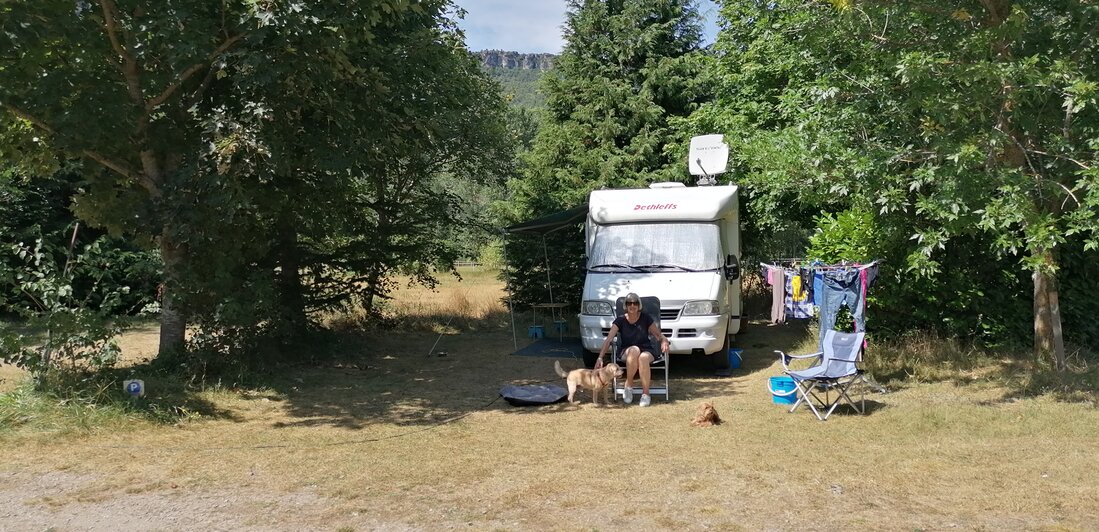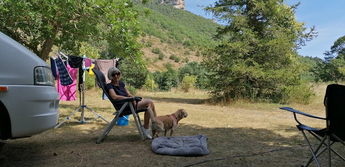 Genieten van het uitzicht en het mooie weer. Een luierdag op camping Le Vialaret aan de Dourbie.